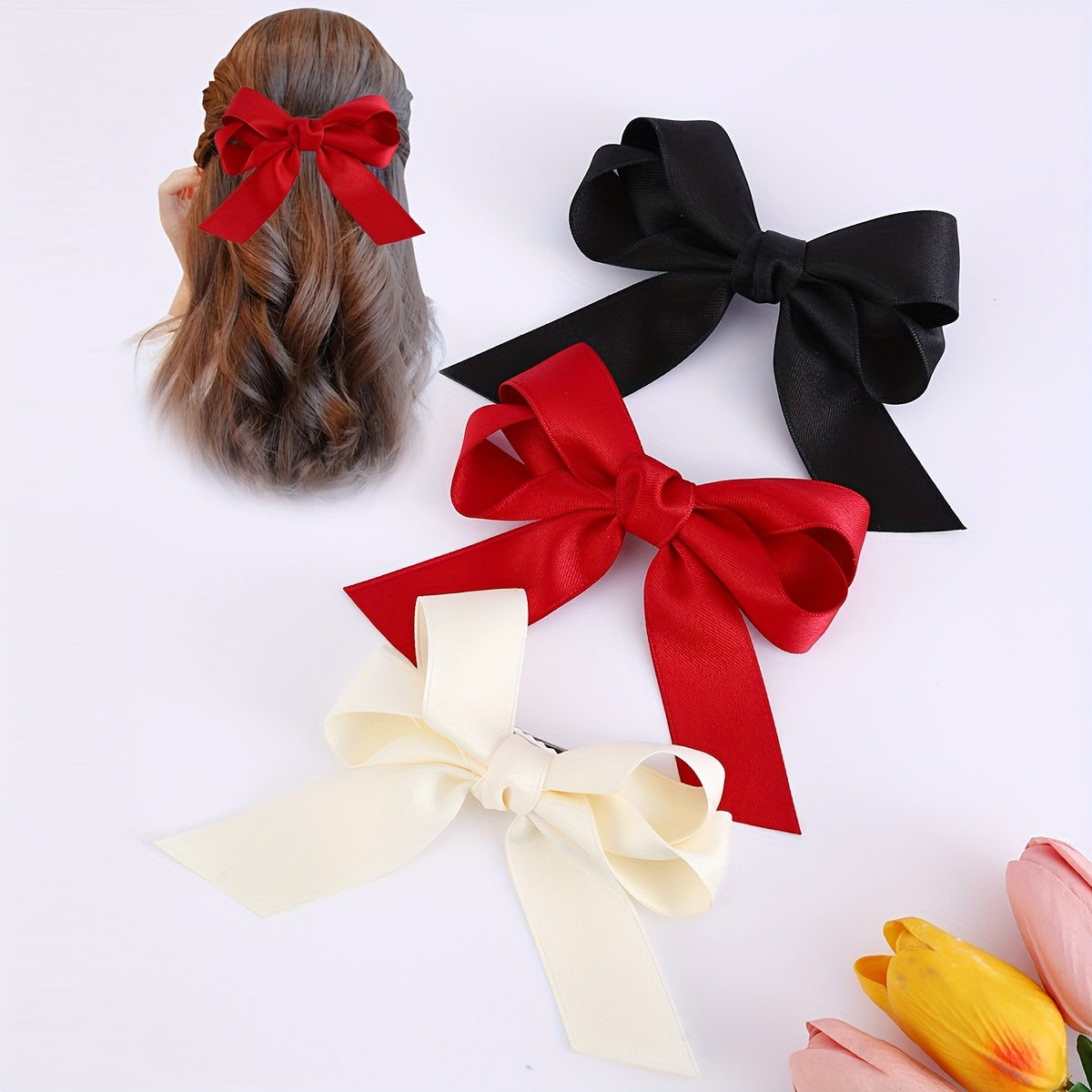 - Style Name: Jade Satin Bow Clip Set (3-Pack)