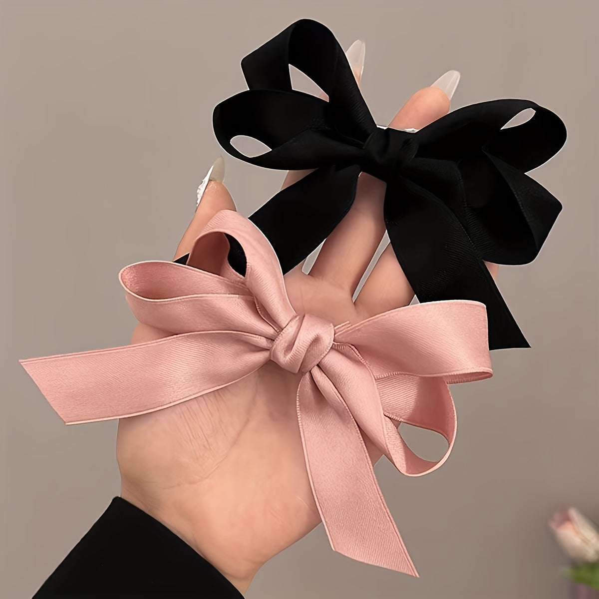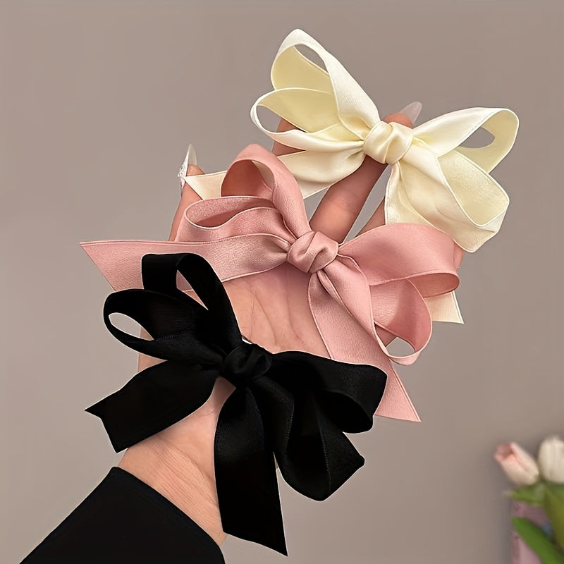 Jade is a charming trio of satin bow clips designed to add a soft, sweet accent to any hairstyle. With a velvety matte sheen and delicate structure, these butterfly-shaped bows in beige, blush pink, and black bring a playful yet elegant flair to ponytails, half-up styles, or pinned just above the ear.